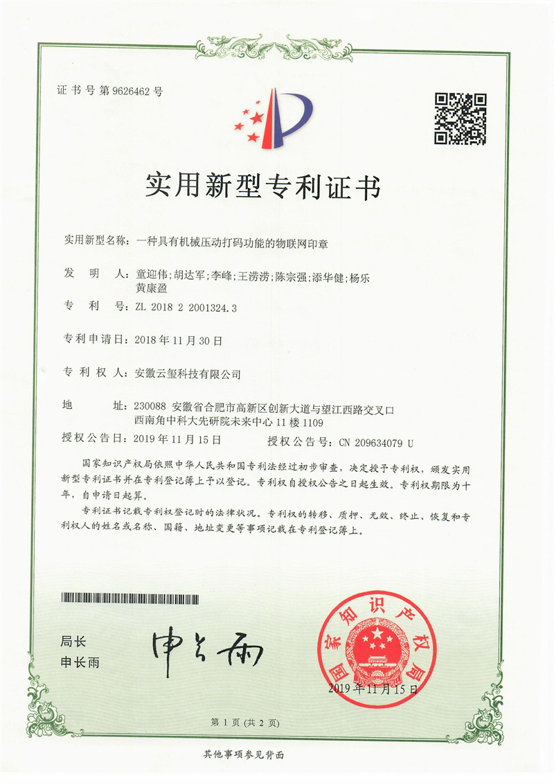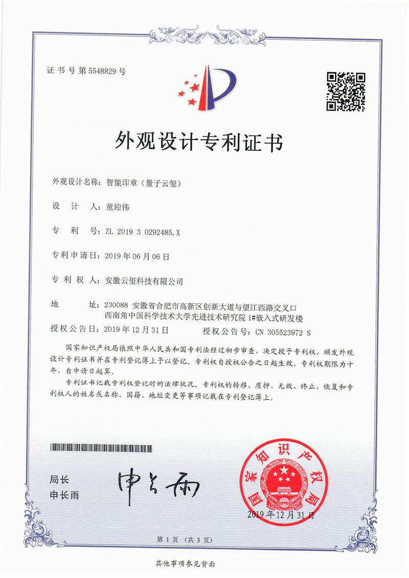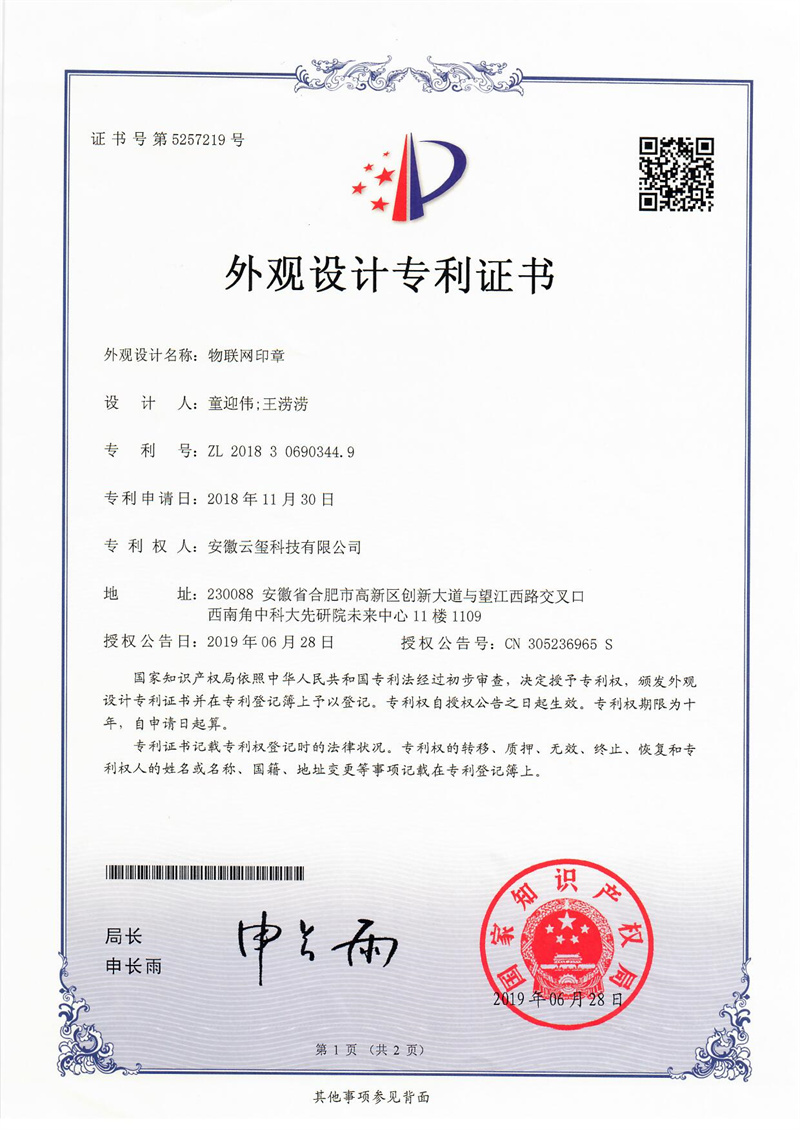 公司原創(chuàng)發(fā)明一體式智能印章技術(shù),引領(lǐng)國內(nèi)外新一代智能印簽創(chuàng)新變革。獲中日韓多項(xiàng)發(fā)明專利,徹底解決了實(shí)體印章和電子印簽管控的社會難題,獲國務(wù)院國資委全國央企熠星二等獎。公司聯(lián)合國家信息安全產(chǎn)品認(rèn)證中心、公安部三所、信通院、中國印章協(xié)會等,主導(dǎo)起草了行業(yè)首個(gè)智能印章安全認(rèn)證標(biāo)準(zhǔn)和智能印章產(chǎn)品標(biāo)準(zhǔn),引領(lǐng)了智能印章行業(yè)發(fā)展。