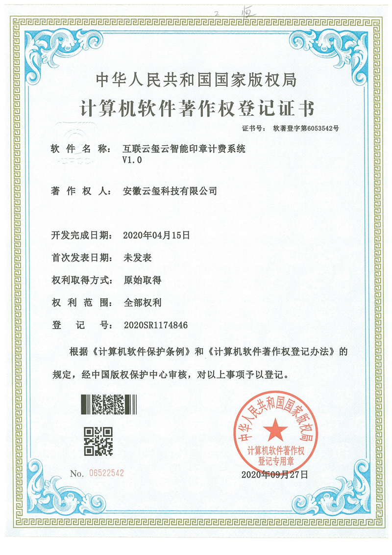 互聯(lián)云璽云智能印章計(jì)費(fèi)系統(tǒng)V1.0
